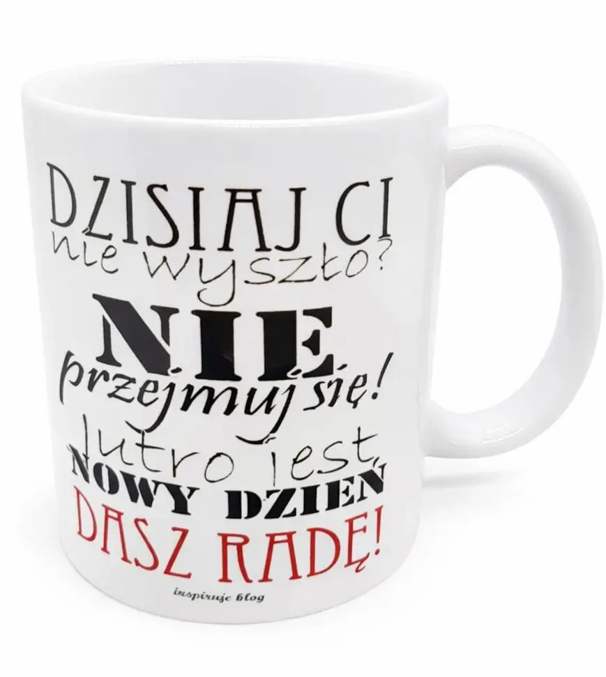 Nasze białe kubki z nadrukiem i motywującym tekstem to idealny sposób, żeby uśmiech na twarzy obdarowanej osoby i czegoś wyjątkowego do codziennej kawy